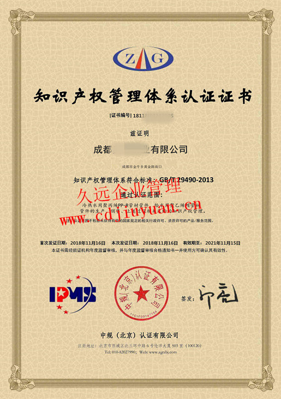 知識(shí)產(chǎn)權(quán)管理體系認(rèn)證證書
